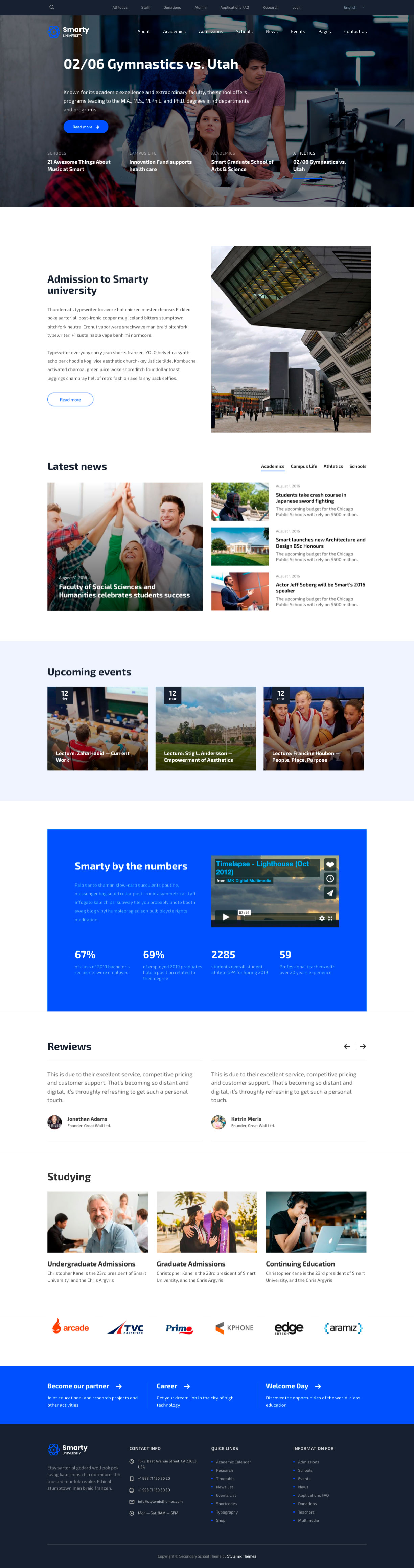 Smarty School WordPress Theme dirancang khusus untuk mendukung komunitas pendidikan Anda. Cocok untuk taman kanak-kanak, sekolah, perguruan tinggi, alumni, maupun universitas, platform ini memberikan solusi intuitif bagi guru, staf, orang tua, dan siswa di setiap jenjang pendidikan, sehingga semua pihak bisa berperan aktif dalam kehidupan sekolah atau lingkungan belajar Anda. Unduh sekarang tema WordPress sekolah terbaik ini!